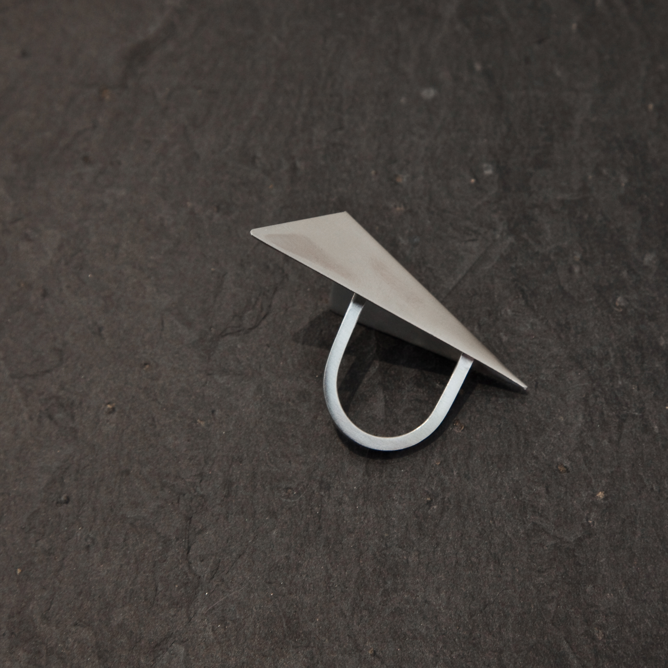 El anillo de la colección Métrico es un anillo muy extremado y atrevido. Perfecto para un día especial. Su figura busca la belleza de las formas simples y el volumen a través de la técnica del plegado de metal. Aunque su apariencia es un anillo muy cómodo, ya que el brazo del anillo es fino y la figura no pesa. El anillo es de plata matizada.